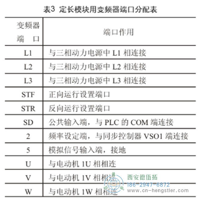 同步控制器端口分配表:同步控制器端口動作反饋信號2輸入VSF2,接收模擬信號反饋信號2輸人,接地反饋信號3輸入VSF3,接收模擬信息反饋信號3輸人,第一單元接地輸出VS01,連接模塊變頻器頻率設(shè)置端2第一單元輸出公共端,接地第二單元輸出VSOl,將調(diào)平模塊變頻器的頻率設(shè)置端連接至裝置2輸出的公共端,將接地裝置3輸出的VS01和饋線模塊變頻器的設(shè)置端連接到裝置的公共端。
